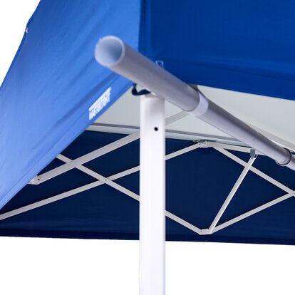 Шатрата модел Квадрат 3х3м веднага грабва вниманието с привличащата окото форма и се отличава от класическите шатри. Тя е не само квадратна, но също така притежава плосък покрив и широки стрехи. Благодарение на уникалната си форма шатрата Квадрат е особено подходяща за пазарска шатра, изложбена шатра или шатра за събития.