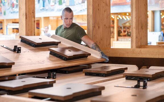 Während manche Festzelt-Betreiber gerade zum Endspurt ansetzen, liegt bei MASTERTENT Vorfreude in der Luft. Die heiße Phase ist seit Kurzem vorbei: Tausende von Bierzeltgarnituren und das gesamte Sonderinventar sind fertig produziert, angeliefert, aufgebaut, montiert und bereit für den Fassanstich am kommenden Samstag, den 16. September.