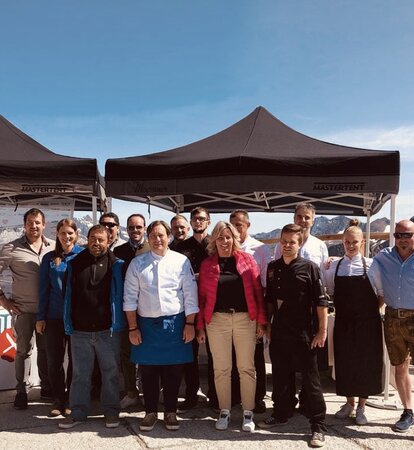 Passend zum Sommerabschluss der Live-Koch-Show spielte auch das Wetter mit. Unerwartet für die 3.212 m Höhe gab es zum Genuss-Stopp sommerliche Temperaturrekorde. Während das Thermometer immer weiter nach oben kletterte fürchteten Silvia und die Köche, dass es unter den dunklen Lodenstoffen der Faltzelte bestimmt auch bald kochend heiß wird.