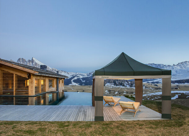 Stolz und zufrieden stellte auch Silvia fest, dass die Lodenzelte eben echte Alleskönner sind. Sie erzählt vom Platzregen auf der Seiser Alm, wo sich die Zelte als Regenschutz für die ganze Technik bewährten und vom Genuss Stopp in Gröden. Damals benutzten sie zum ersten Mal die an den Zeltscheren befestigten Scheinwerfer, weil es aufgrund einer Schlecht-Wetter-Front schon früh dämmerte.