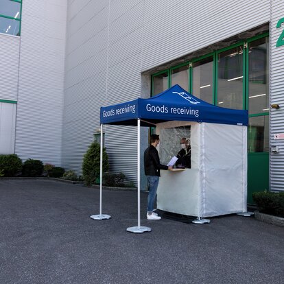 Als europäischer Hersteller von Faltpavillons sind wir dank eigener Produktion besonders flexibel und können uns schnell den neuen Anforderungen in dieser schwierigen Corona-Krise anpassen.