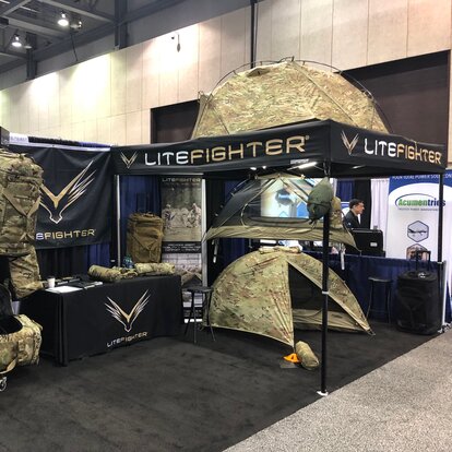Our in-house graphics and printing teams love working with you on amazing designs for the new 10x10 Square. All the vertical space, especially when packaged with sidewalls, allows for your message to be front and center with incredible, high-quality graphics.