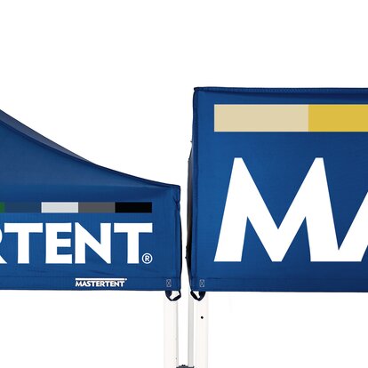 The Mastertent 10x10 Square is the perfect advertising tent that attracts the crowd to deliver a big message. The innovative roof provides enormous side valances - nearly 3ft tall. With almost 30 ft² of roof advertising surface on each side, the flat roof canopy tent approaches 3x the vertical valance printing space of a classic roof.