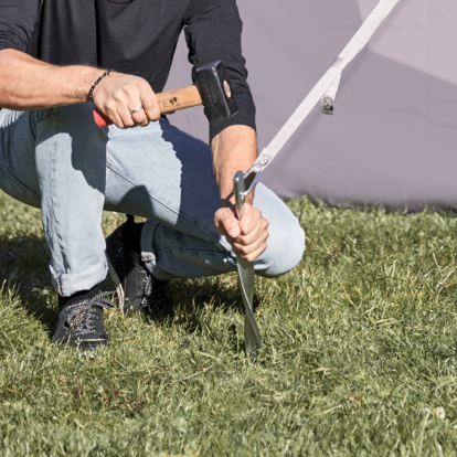 Our heavy-duty ground anchors take tent stakes to an all-new meaning. The spiraled cast iron pegs combine with heavy study guy ropes for ample top-down securing.