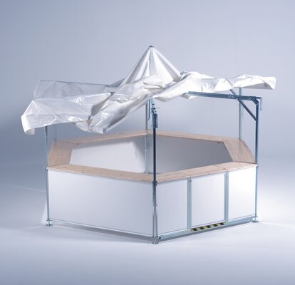 Square Pavilion: ideal for sales stands, information points, or checkout areas where space is limited