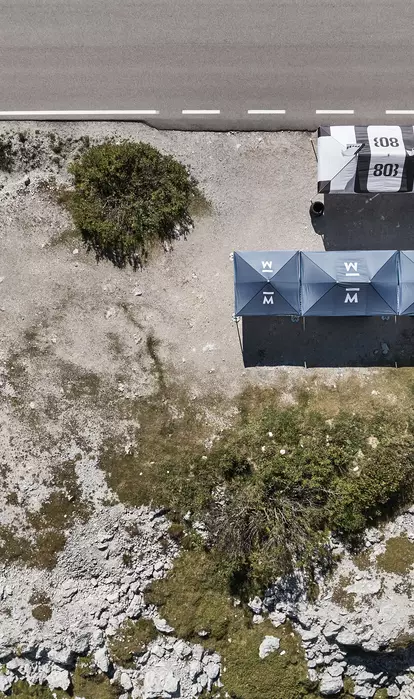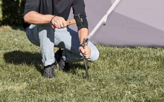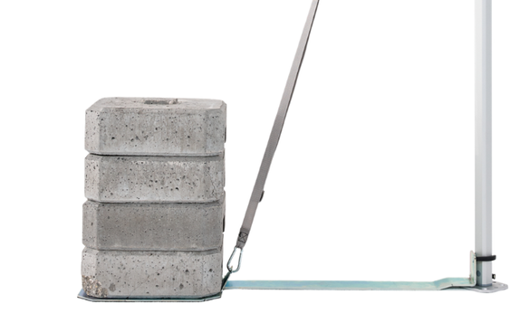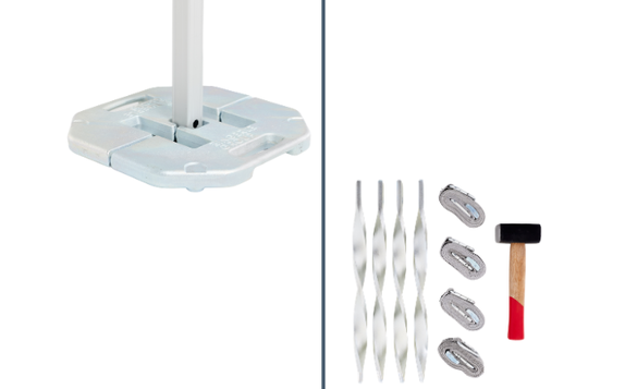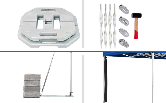 For safe operation, each tent must be secured with the appropriate combination of base weights, ground anchors, water weights, or other anchoring solutions. If conditions become extreme, uncertain, or the tent will be left unattended, it should be closed and stored immediately.