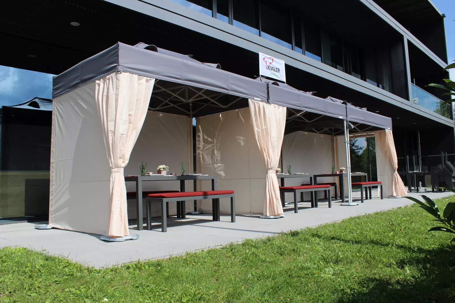 Another tip: choose a light colour if you want to keep the temperature under your gazebo lower. Light grey and ecru are perfect because stains and dirt are not noticeable.