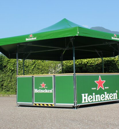Si se desea atraer la atención incluso en los lugares más concurridos, es tan simple como personalizar toda la superficie del kiosco cervecero. MASTERTENT le permite elegir el color del techo de PVC y personalizar toda la superficie del techo y paneles con logos, marcas, imágenes u otros motivos. Faltaría añadir las banderas publicitarias en el techo, que le harán destacar todavía más. Nuestro departamento gráfico le ayudará siempre para ofrecerle la mejor solución.