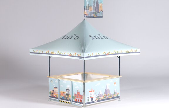 El stand de bebidas está disponible en tres medidas diferentes: cuadrado, hexagonal y octogonal. Independientemente de la dimensión, cada stand puede ser montado en apenas 10 minutos sin necesidad de herramientas.