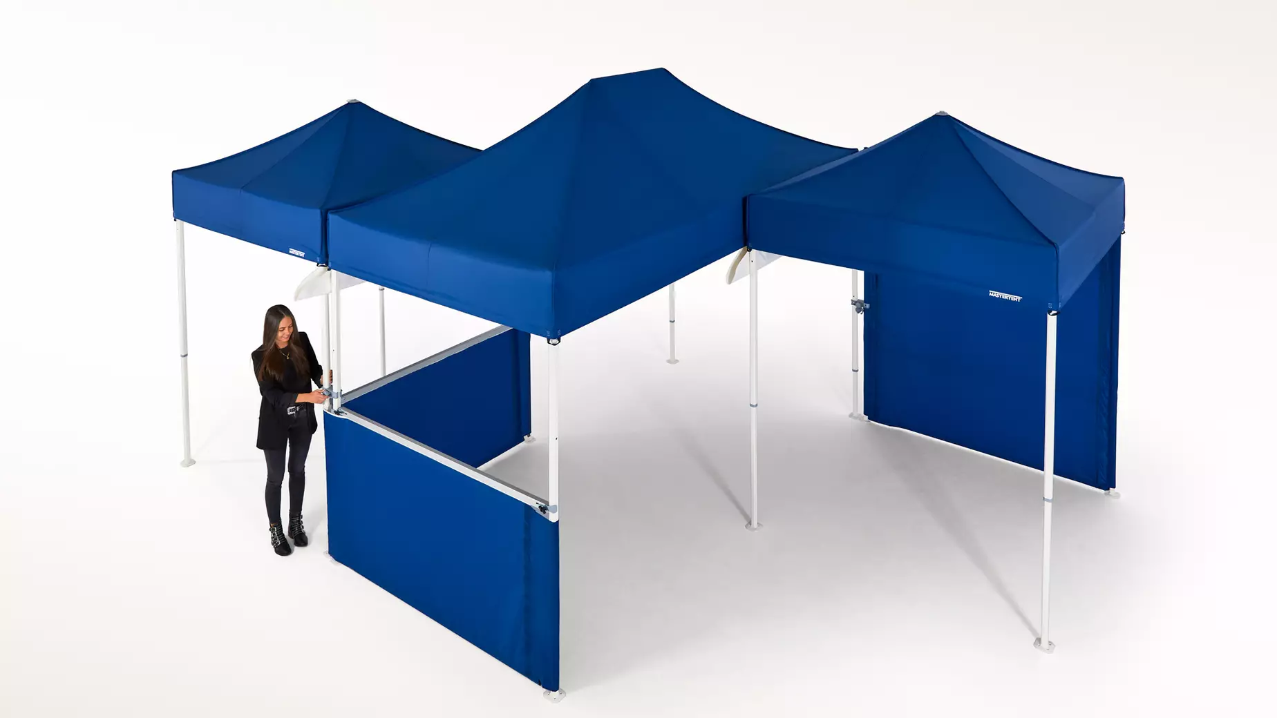 Con gli elementi di collegamento Mastertent è possibile creare una connessione stabile tra due o più gazebo pieghevoli in un batter d'occhio. I morsetti di collegamento possono essere facilmente fissati alle gambe del gazebo e regolati. Così i tuoi gazebo saranno saldamente uniti fra loro.