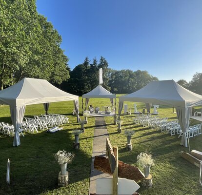 Struttura in alluminio ad alta resistenza, tetto impermeabile con cuciture sigillate e materiali testati per utilizzo intensivo garantiscono un allestimento ordinato e affidabile per tutta la durata dell’evento.