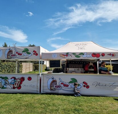 Personalizzabile con stampa su tetto e pareti laterali, stabile e rapido da montare, è la soluzione affidabile per uno stand Street Food sicuro e riconoscibile.