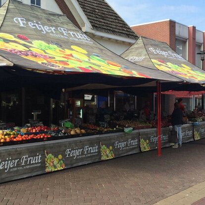 Scegli il colore di tetto e struttura e rendi il tuo stand riconoscibile ovunque con una stampa a tutta superficie. Il nostro team di grafici esperti è a tua disposizione per aiutarti a progettare il gazebo dei tuoi sogni. Finalmente sarai fiero/a del tuo stand!