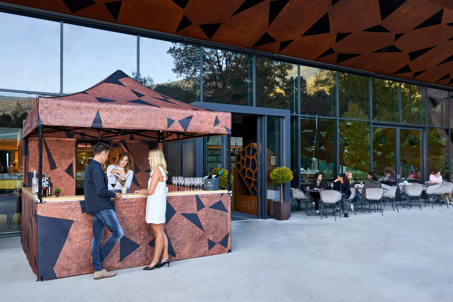 To najlepiej uda się dzięki namiotowi ekspresowemu z nadrukiem Mastertent. Nasi kreatywni współpracownicy wiedzą, jak najkorzystniej zaprezentować Wasze logo, napis lub fotografię. Z miłości do szczegółów urzeczywistniają Wasze pomysły i życzenia. Dla namiotu ekpresowego z nadrukiem, tak indywidualnego, jak Wy sami. Wasz namiot ekspresowy – to unikat.
