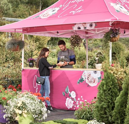Twoje logo, kolory i przekaz – precyzyjnie odwzorowane dzięki profesjonalnym technikom druku na stabilnych, aluminiowych namiotach składanych.